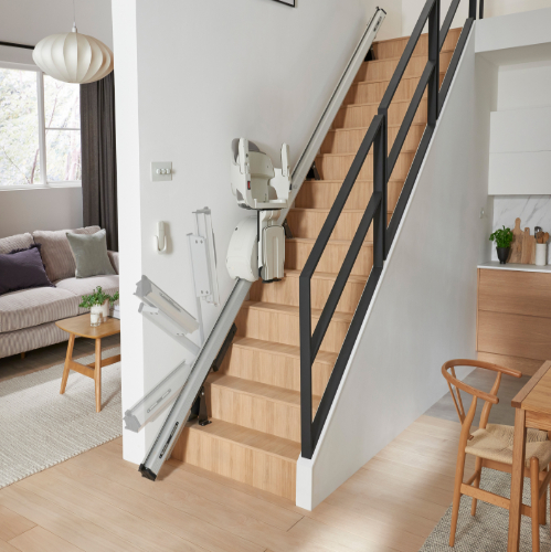 Claira Autonomie propose des monte-escaliers droits, tournants ou extérieurs, adaptés à la configuration de chaque logement, afin de garantir un déplacement confortable et sécurisé au quotidien.
